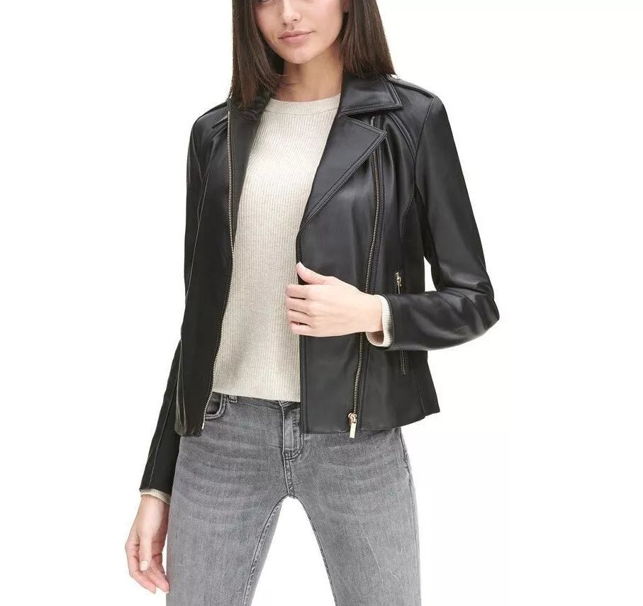 Leather Jacket Women Biker Motorcycle Women Soft Fit Size Real Black