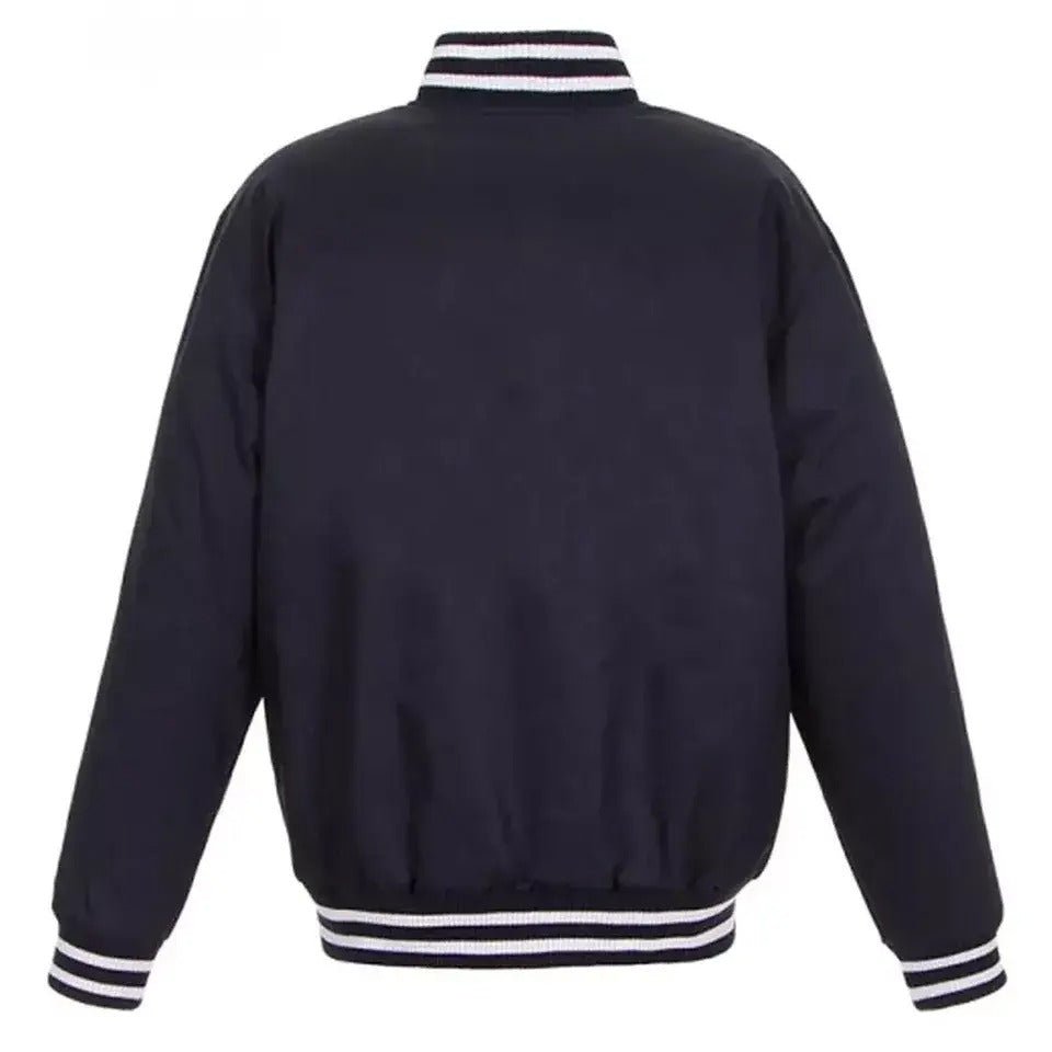 Show your team pride with the Vancouver Canucks Navy Blue All Wool Letterman Varsity Jacket. This iconic jacket blends traditional varsity style with bold team representation. Crafted from premium all-wool fabric and featuring genuine leather sleeves, it delivers both style and comfort for any season.