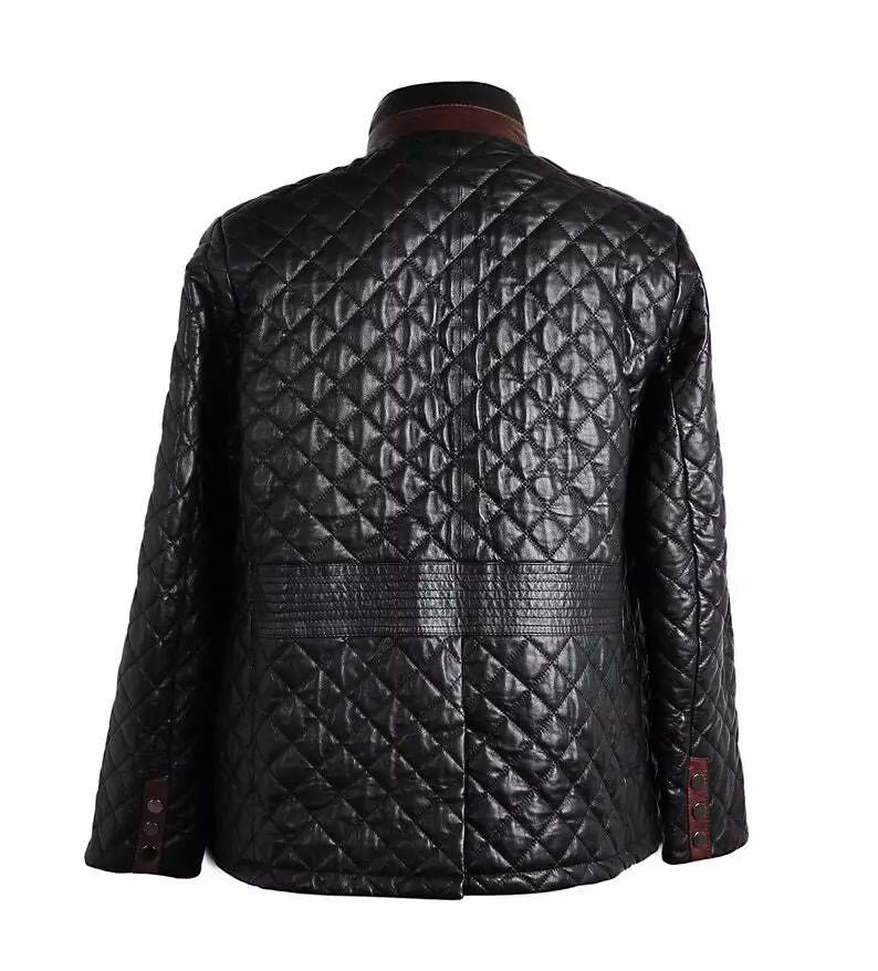 The Men’s Black Luxury Lambskin Leather Biker Quilted Jacket offers premium quality with a sleek, edgy design. Crafted from luxurious lambskin leather, it features quilted detailing for added style and comfort. Ideal as a gift for him, this jacket combines durability with sophistication, making it a standout piece for any wardrobe.