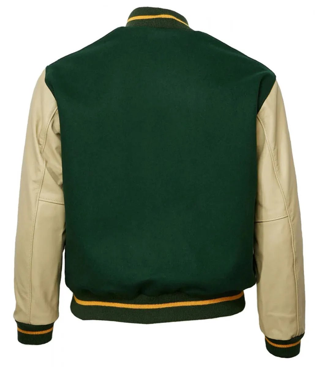 Show off your Green Bay Packers pride with this timeless 1950 green varsity jacket. Crafted from high-quality wool, this jacket brings comfort, warmth, and a nod to the Packers’ legendary 1950 season. The embroidered Packers logo on the chest adds a touch of authenticity, making it a must-have for any true fan. Whether you’re at the game or out on the town, this vintage-inspired jacket offers a stylish and cozy way to represent your team.