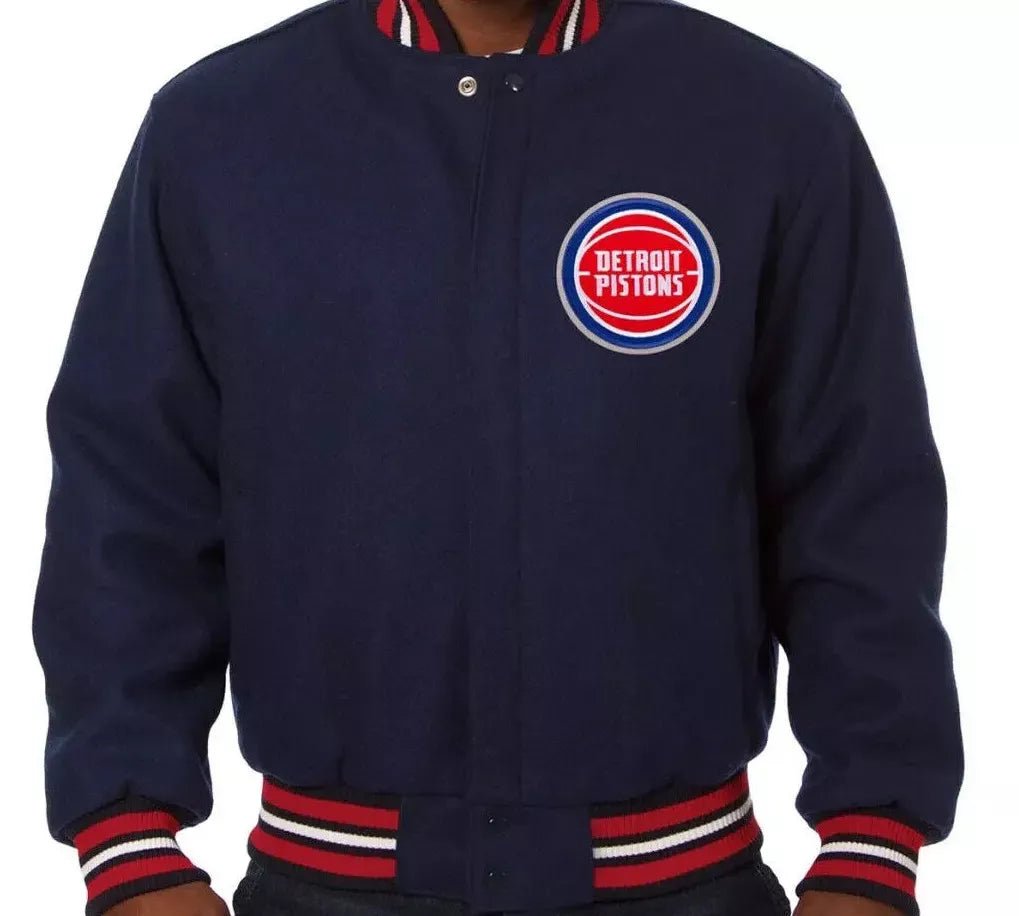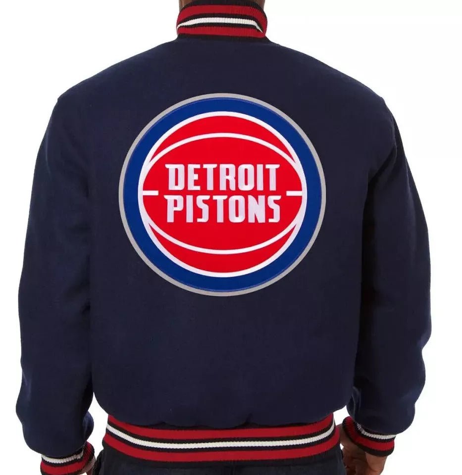 Men Letterman Detroit Pistons Navy Blue All Wool Varsity Jacket – NBA