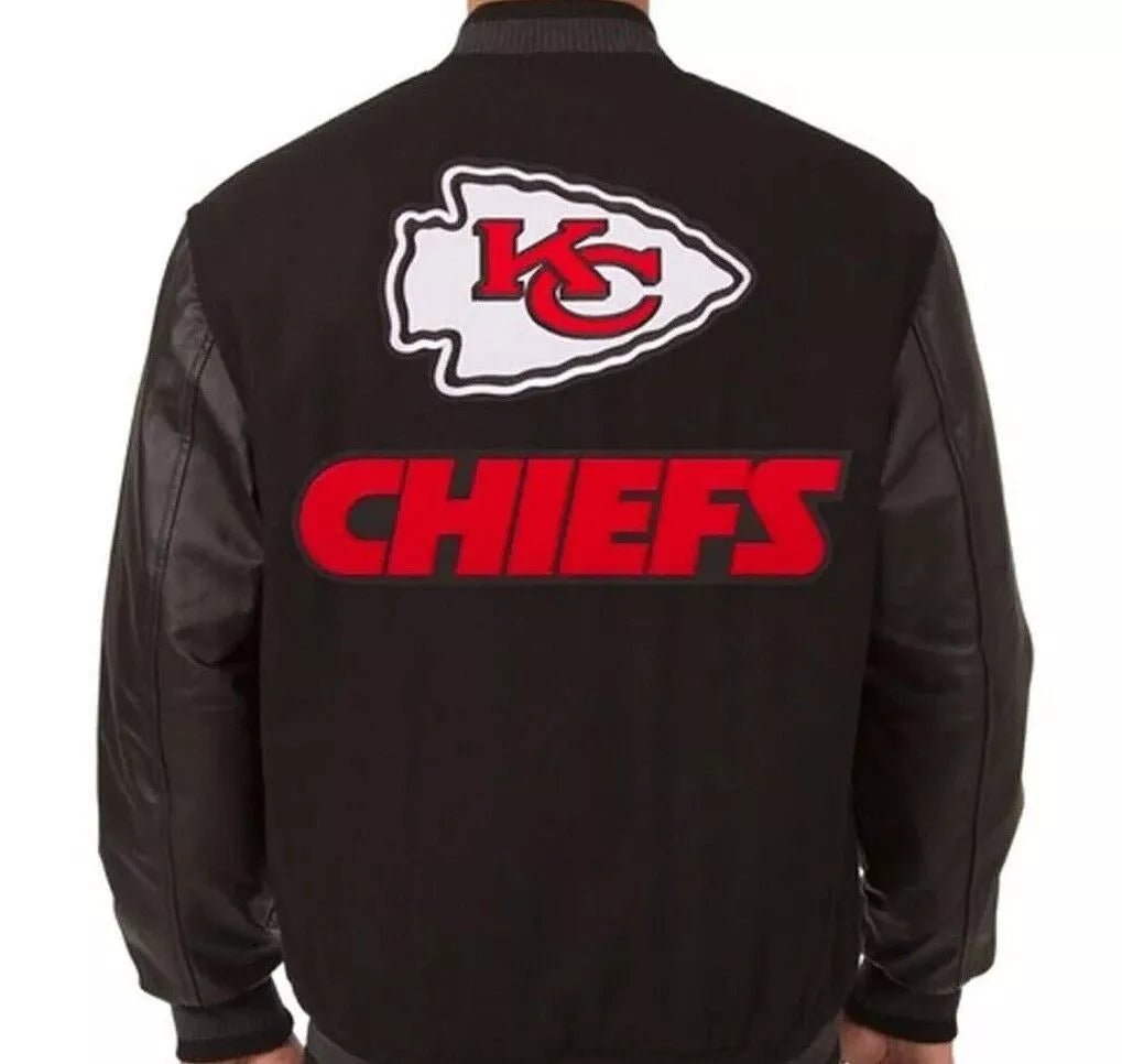 Display your Kansas City Chiefs pride in a sleek and stylish way with the Men’s Letterman Black Varsity Jacket. This jacket combines a classic black varsity design with bold team accents, making it perfect for any Chiefs fan. The embroidered Kansas City Chiefs logo on the chest showcases your team spirit, while the contrast of black and red highlights the iconic team colors. Whether you’re attending a game or simply showing off your fandom, this jacket is a standout piece in any wardrobe.
