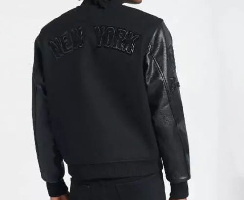 The Men’s Letterman NY Yankees Black Varsity Jacket with Leather Sleeves is the perfect way to showcase your team pride with sophistication and style. Featuring a classic black wool body and premium leather sleeves, this jacket offers both comfort and durability. The embroidered New York Yankees logo on the chest adds an authentic touch, making it a must-have for fans of the iconic team. Whether you’re headed to a game or out for a casual day, this varsity jacket ensures you stay warm and stylish.