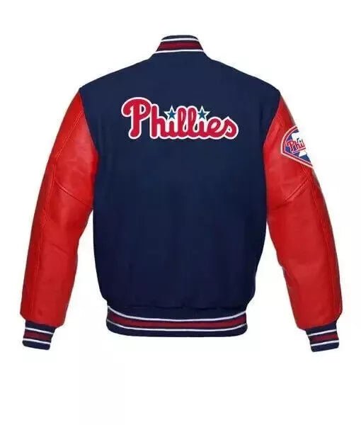 The Men’s Letterman Philadelphia Phillies Varsity Jacket combines classic varsity style with high-quality materials to create the ultimate fan jacket. Crafted with a wool body and genuine leather sleeves, this jacket provides both warmth and durability. The bold Philadelphia Phillies logo on the chest ensures you showcase your team pride with every wear. The design offers a balanced look with the soft wool providing comfort, while the leather sleeves add an extra touch of sophistication and style.