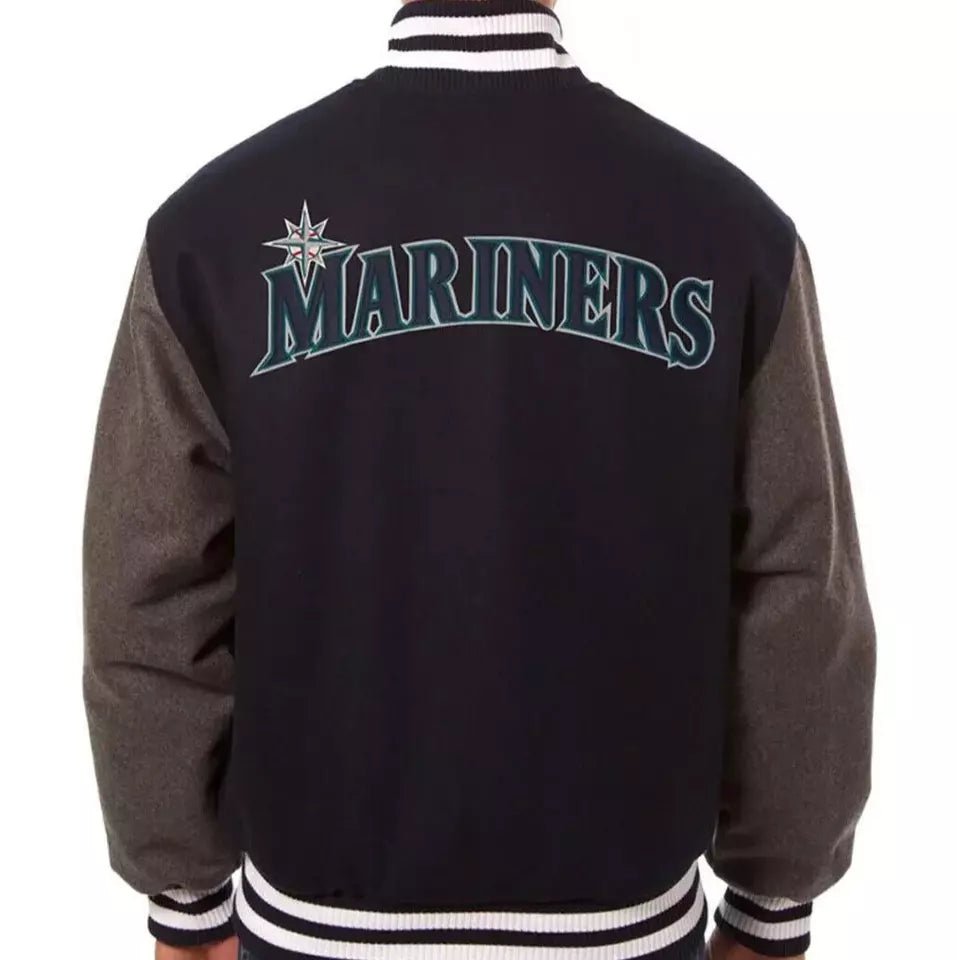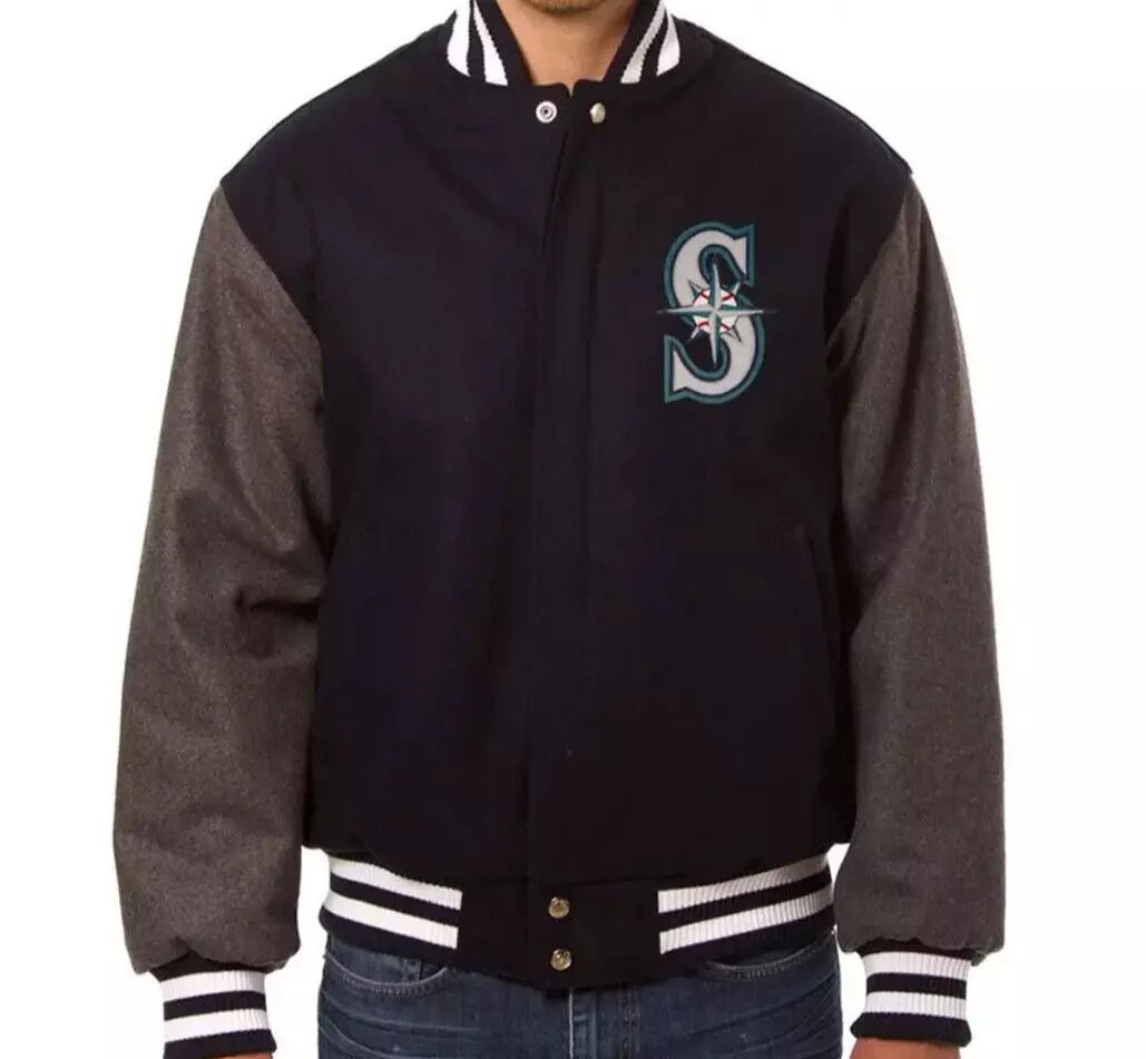 Men Letterman Seattle Mariners Two Tone Navy and Grey Wool Varsity Jacket – MLB
