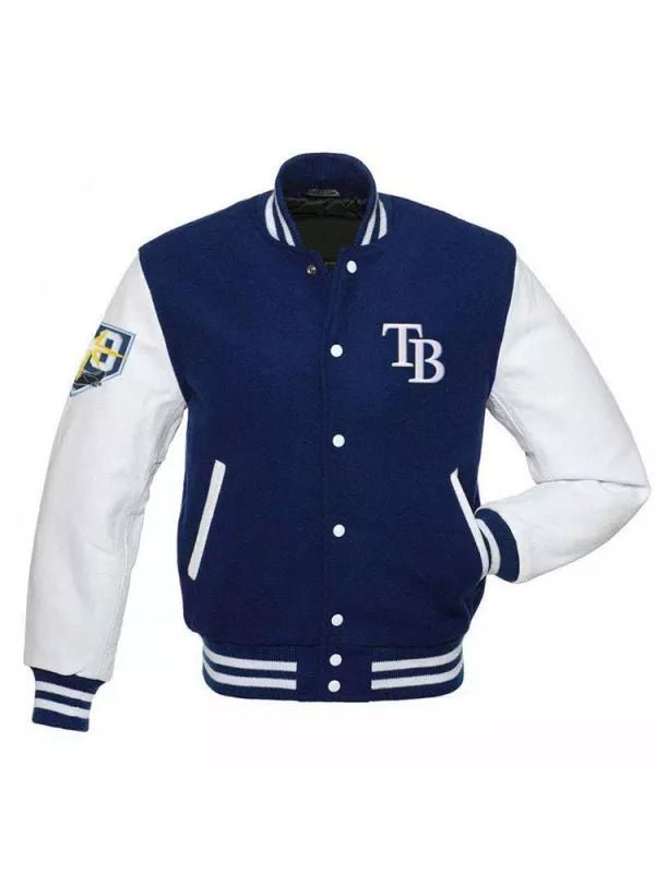Men Letterman Tampa Bay Rays Blue and White Varsity Jacket – MLB