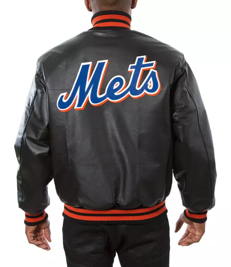 Represent your New York Mets in style with the Men’s Full Leather Letterman Black Varsity Jacket. This jacket features a sleek black leather construction that offers both durability and luxury. The iconic Mets logo on the chest adds authenticity, making it the perfect statement piece for any fan. Whether you’re at the ballpark or out for a casual outing, this jacket combines premium materials and timeless design.