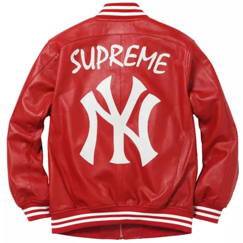 Men NY Yankees Red Letterman Varsity Leather Jacket – MLB