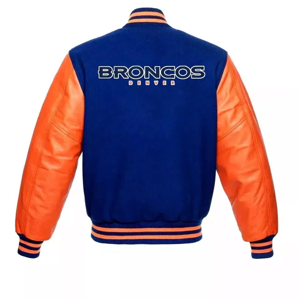 NFL Denver Broncos Letterman Varsity Jacket Wool & Genuine Leather Sleeves